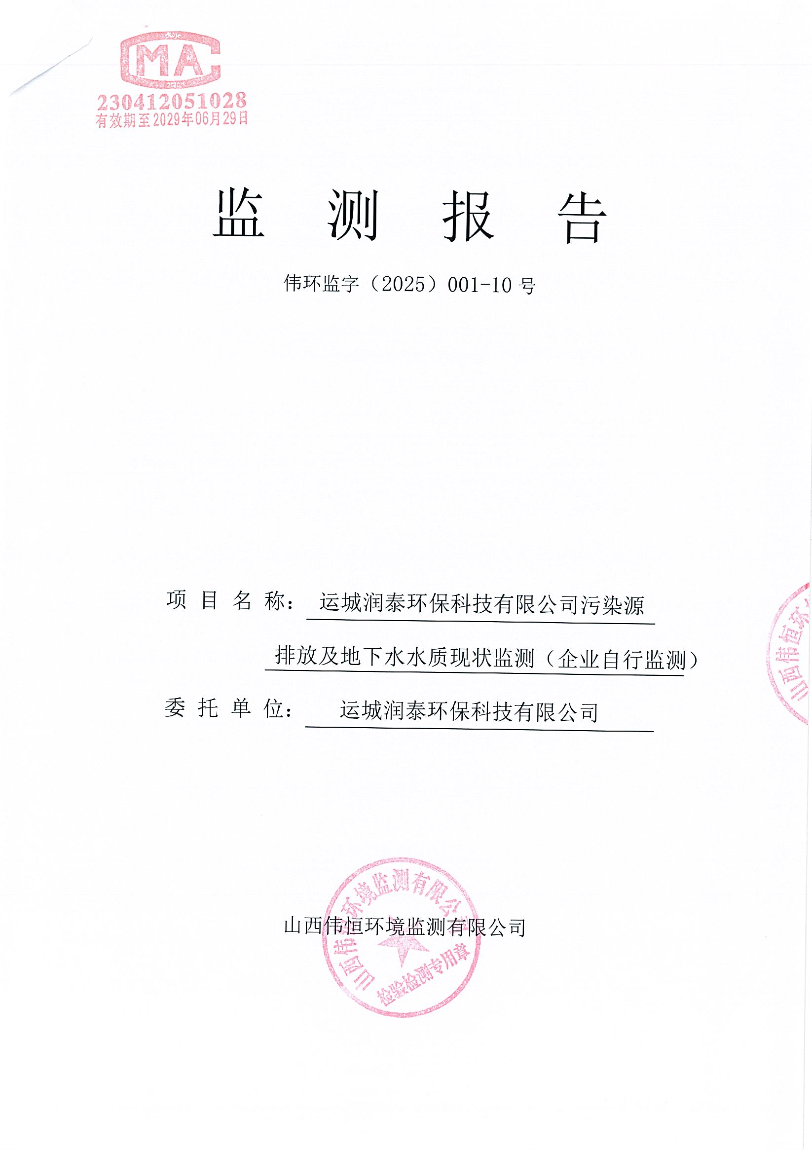 2025年潤泰環(huán)保九月份自行監(jiān)測報告